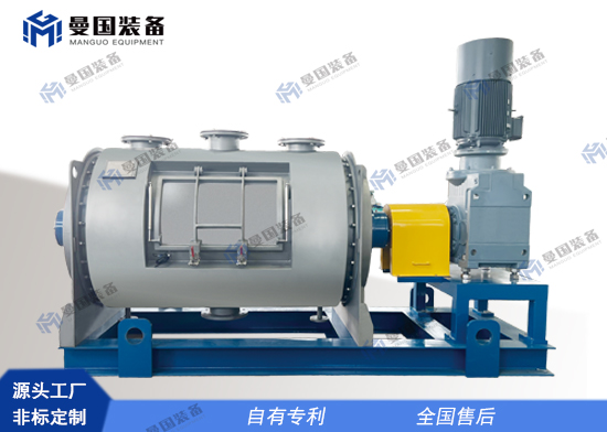 干燥機筒體設置夾套和保溫,當含一定水分的物料進入設備后,設備動部件運轉帶動主軸上安裝的多組錯位犁刀攪拌器以及筒體兩側板位置設置的旋轉刮板運轉,使筒內物料產生不間斷漩渦離心力,不斷重疊翻轉,同時在結構上避免攪拌死角問題。查看更多 + -